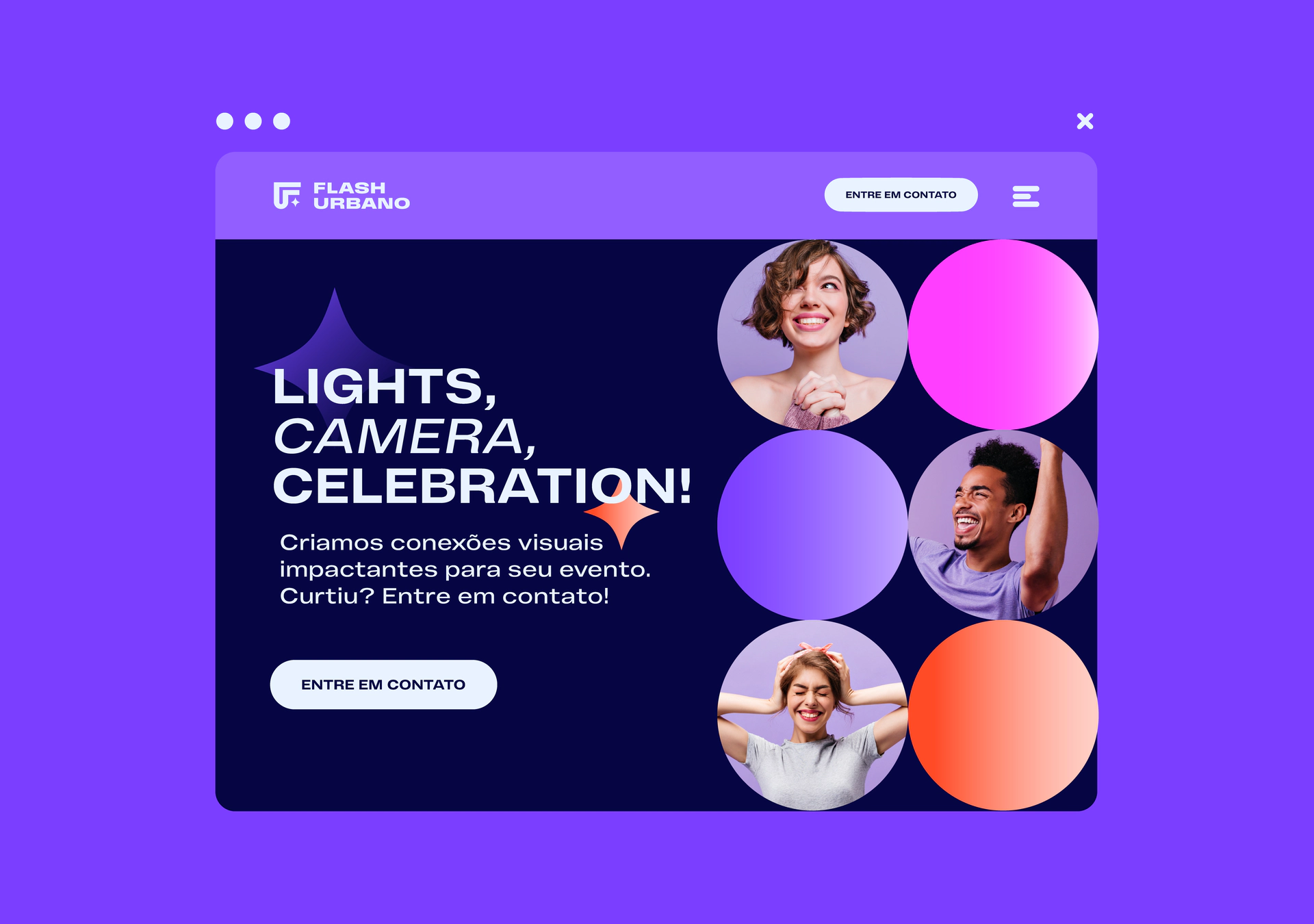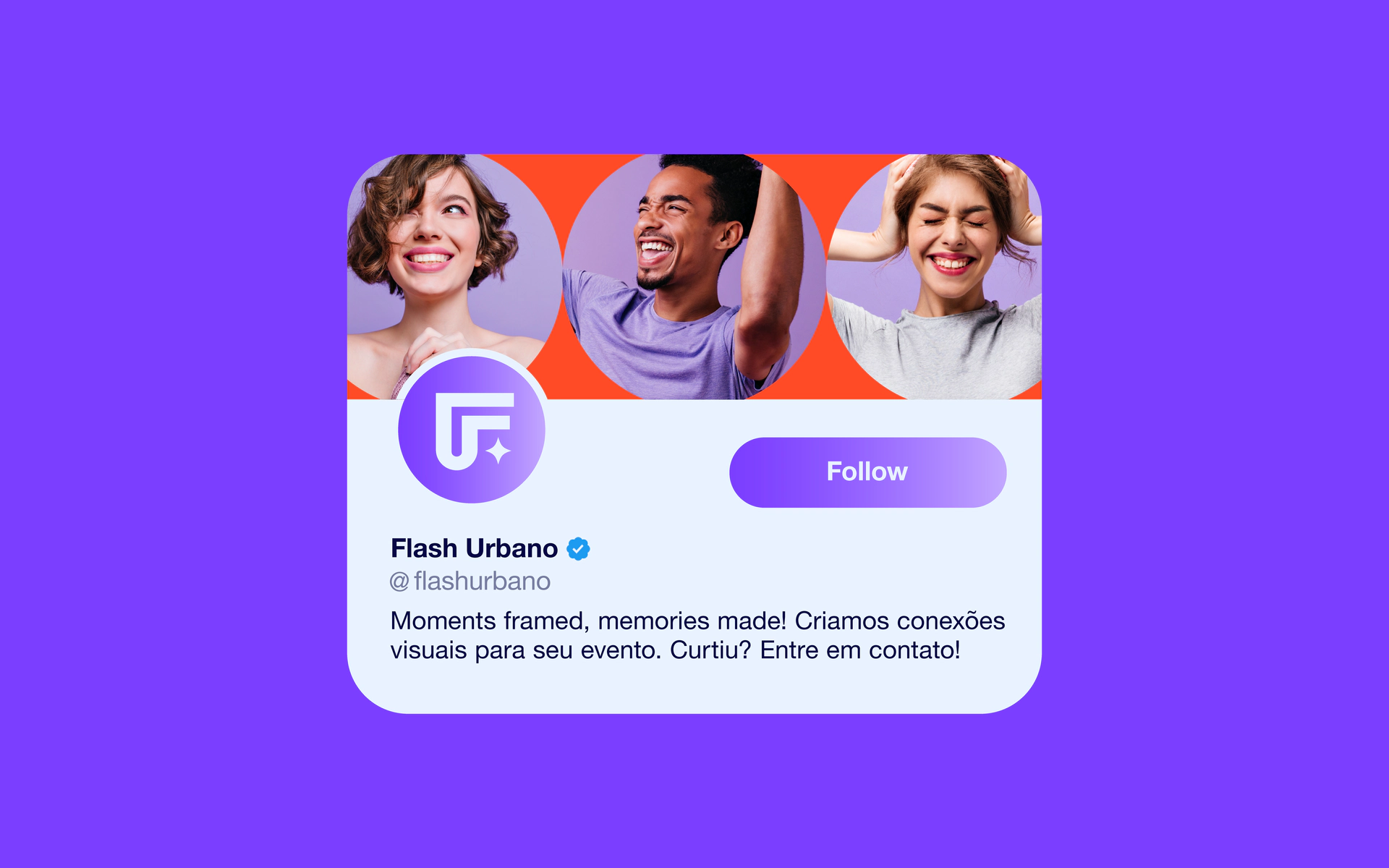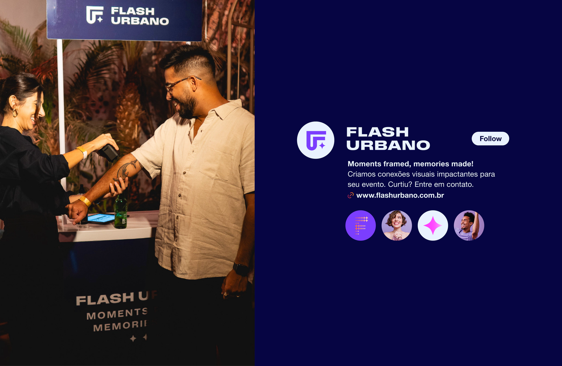 A Flash Urbano é uma empresa inovadora e descontraída que, com totems, cenários fotográficos e impressão de fotos via hashtags, transforma eventos em experiências únicas e interativas. Nas festas, a marca envolve e diverte os convidados, capturando e eternizando momentos felizes. Neste projeto de identidade visual, o desafio foi criar uma atmosfera que fosse ao mesmo tempo lúdica, divertida e profissional. O logotipo une as letras F e U, com uma estrela que remete ao flash de luz. A paleta de cores traduz a alegria e a essência leve e divertida da marca.