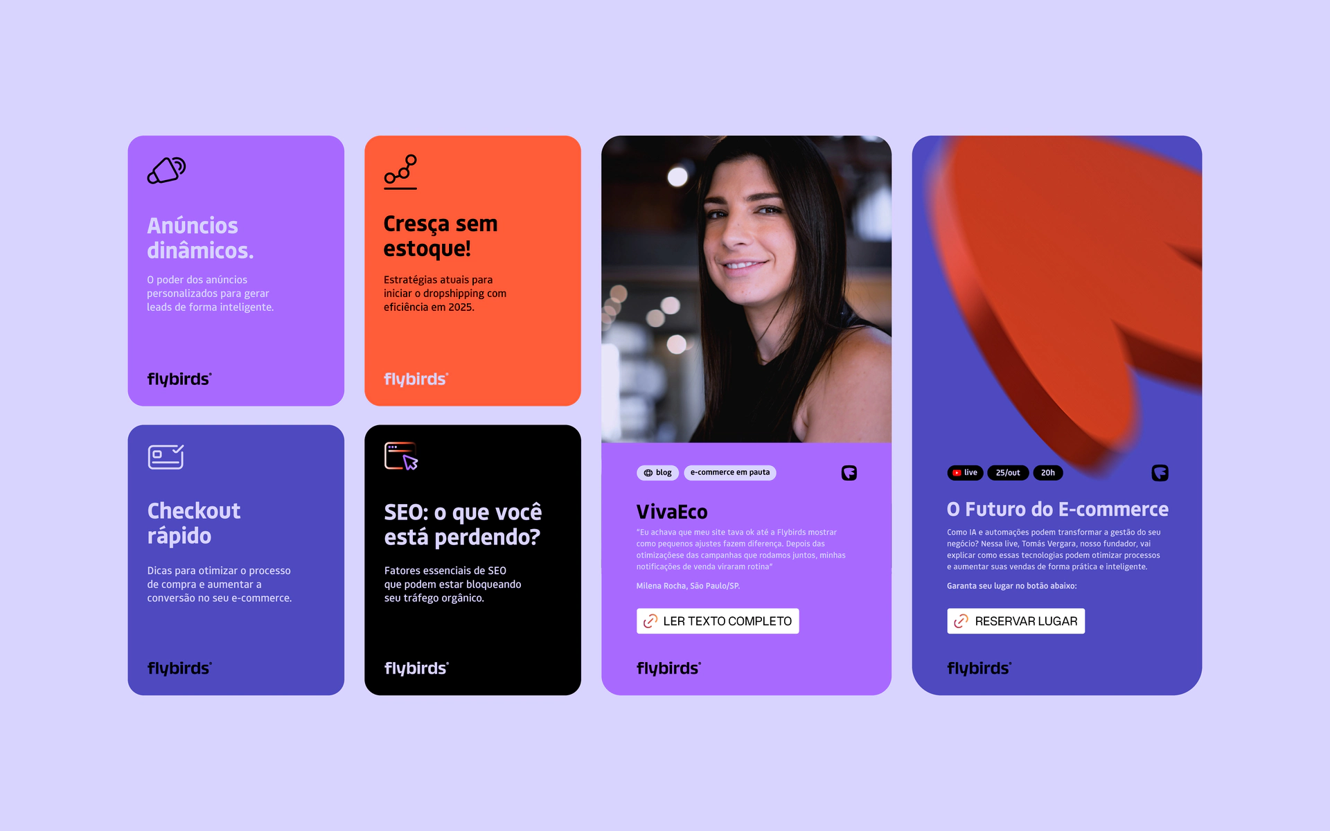A Flybirds é uma agência digital que nasce para impulsionar e-commerces por meio de estratégias inteligentes de tráfego pago. Através de um mapeamento estratégico da jornada do cliente e uso de ativos de dados, a Flybirds possibilita que as lojas enxerguem suas barreiras de crescimento e estabeleçam maiores patamares em performance e vendas.