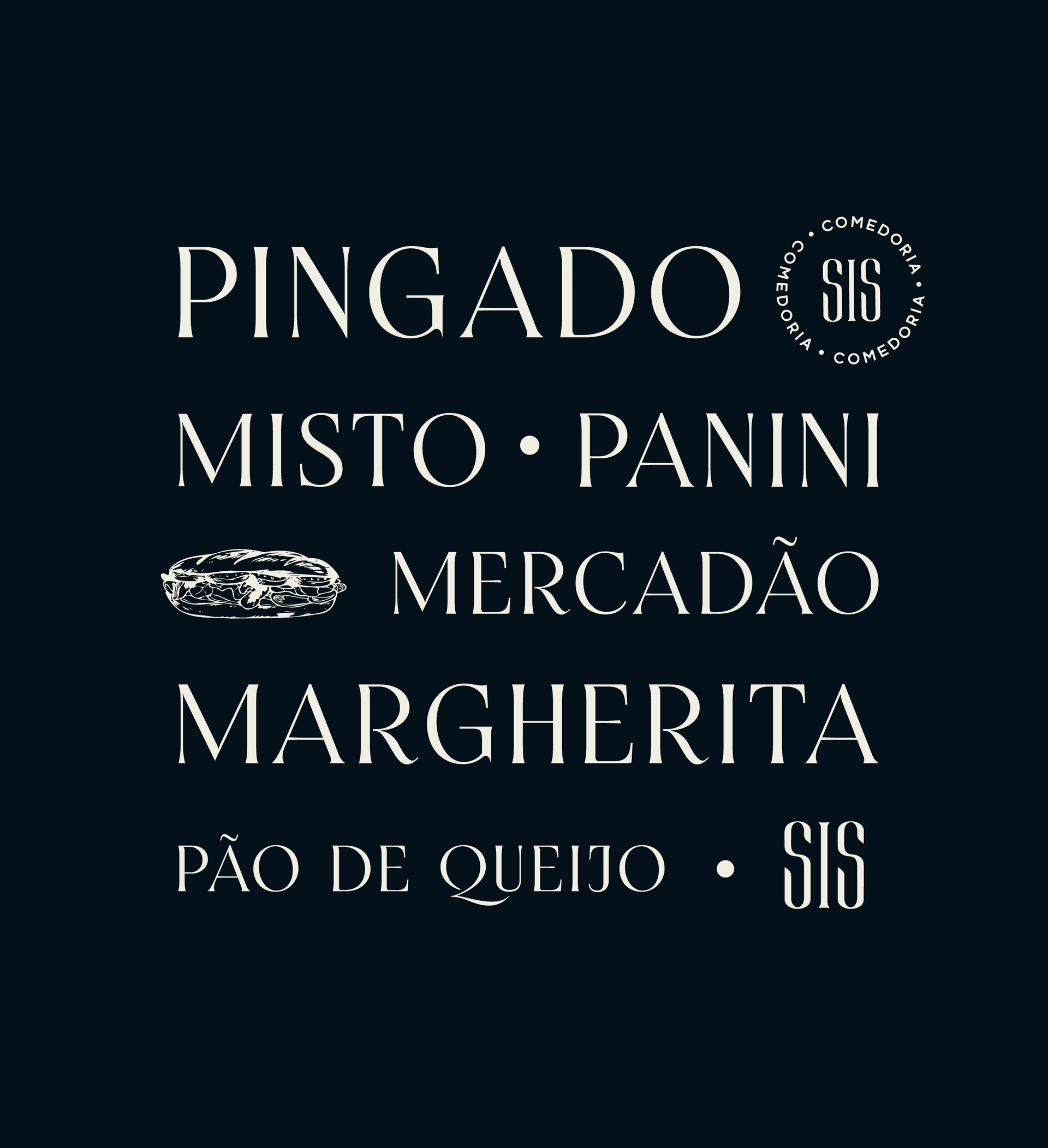 Sis Comedoria é um café-bar gerenciado pelas irmãs Natasha Fujii e Virgínia Fujii, localizado na cidade de Dourados, no estado do Mato Grosso do Sul. O estabelecimento está situado dentro do condomínio Hectares e só é acessível para os moradores. O briefing abriu caminho para a criação de uma identidade visual moderna, elegante, exclusiva e minimalista, destinada a atender a um público de empresários e profissionais liberais.